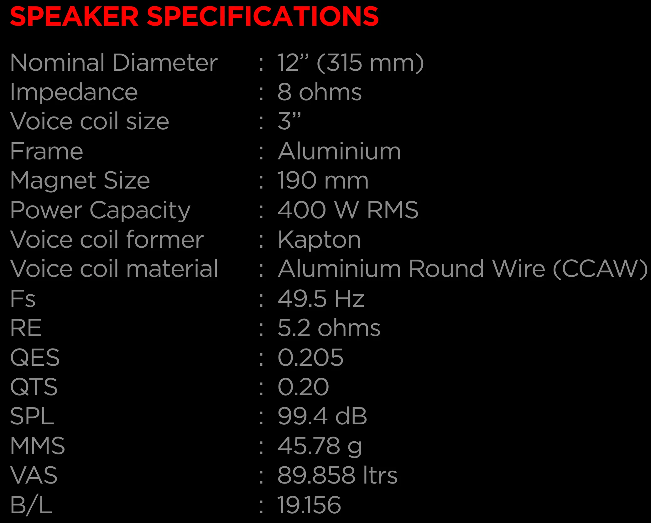 Dynamite 400w Speaker DM-32MH 12” MID Speaker