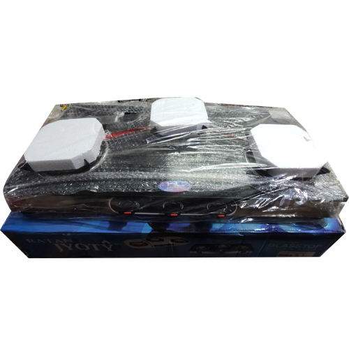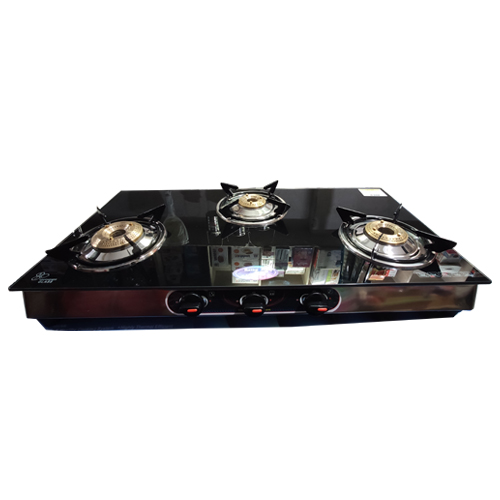 . Type: Manual Gas Stove . Burner Type: Tri Pin Burner . Number of Burners: 3 . Body Material: Glass . Color: Black