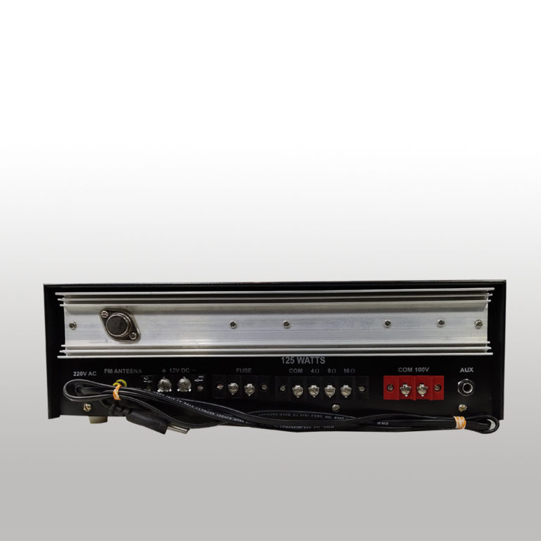 4 Mic & 1 Aux Input Built-in MP3 player with USB reader and remote control Line Output for connecting to a Booster Amplifier Cut type tone control Instant transfer to DC Power (Car Battery) if AC power fails. 125 WATTS WEIGHT:-8.10 KG DELIVERY CHARGE EXTRA