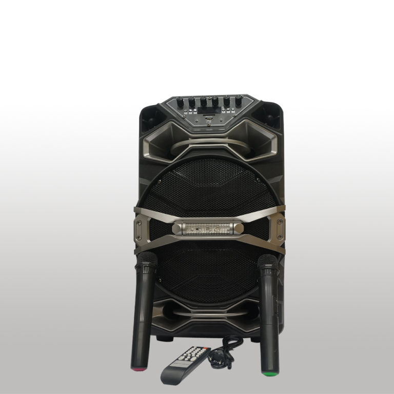 .Battery Backup – Up to 3 hrs. Output RMS – 100 RMS Watt. Trolley Speakers Wireless Mic – Dual Cordless Mic System, Guitar Input .Bluetooth , FM Radio , USB and SD card support. 2 Wireless Microphone Free with this speaker. .Can be connected with any audio/video device like Mobile / PC / Mp3 Player / DVD.Simply plug & play USB and SD card support. .In the Box : Power Cord, 2 X Wireless Microphone, Remote, Manual .Metal Grill Covered Speaker with Strong Steel Trolly Wheel.