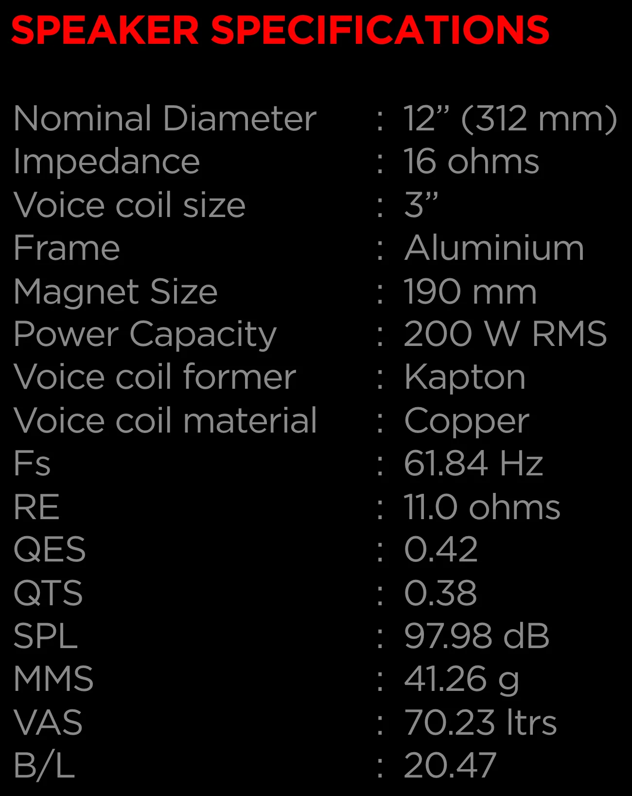 12” Full RAnge & A rare 3 Inches Voice Coil In a Full Range Speaker Provides You With Excellent Full Range Response Which Goes Upto 15KHz & The Choice Of Copper As Voice Coil Material Makes It Extremely Reliable And Capable Of Withstanding Extreme Operating Conditions & DELIVERY CHARGE EXTRA***